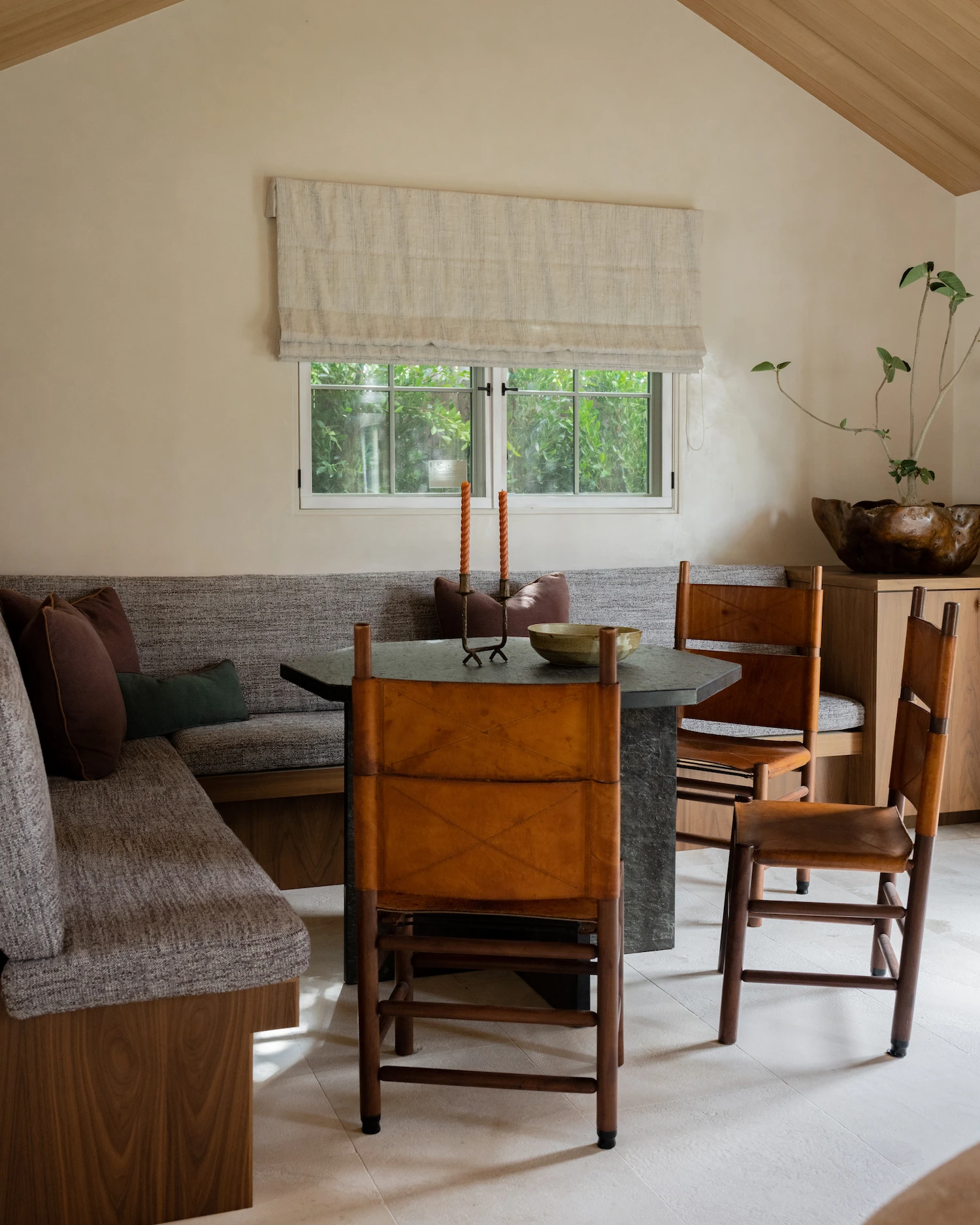 Studio Gutow's East Bluff Residence sits in Newport Beach, California, a 3,000-square-foot home designed for a surgeon who wanted her private life to operate at a different register than her professional one. The brief called for stillness and individuality in equal measure, and the studio responded with a material palette built around aged and natural surfaces rather than anything that reads as new.