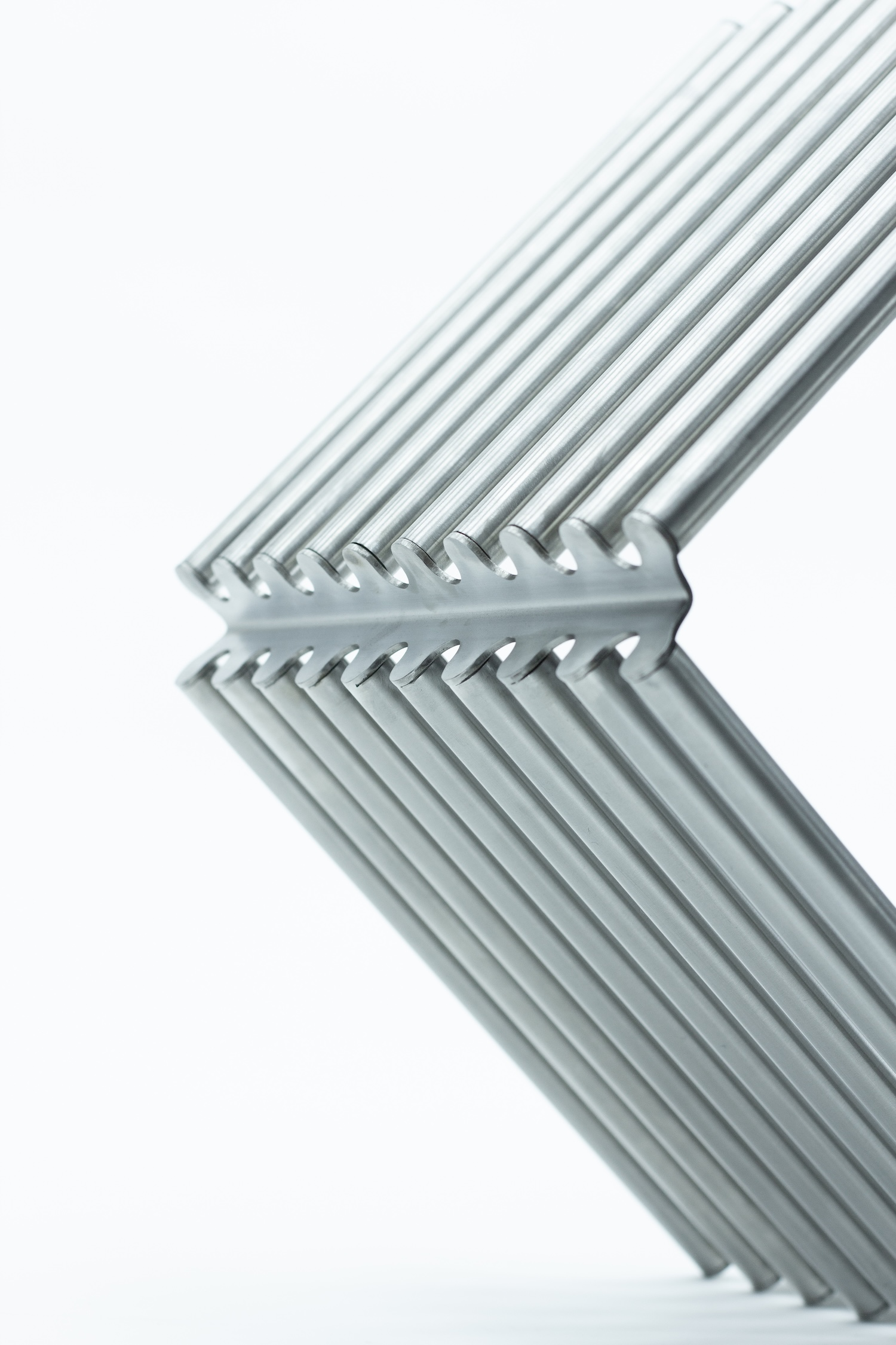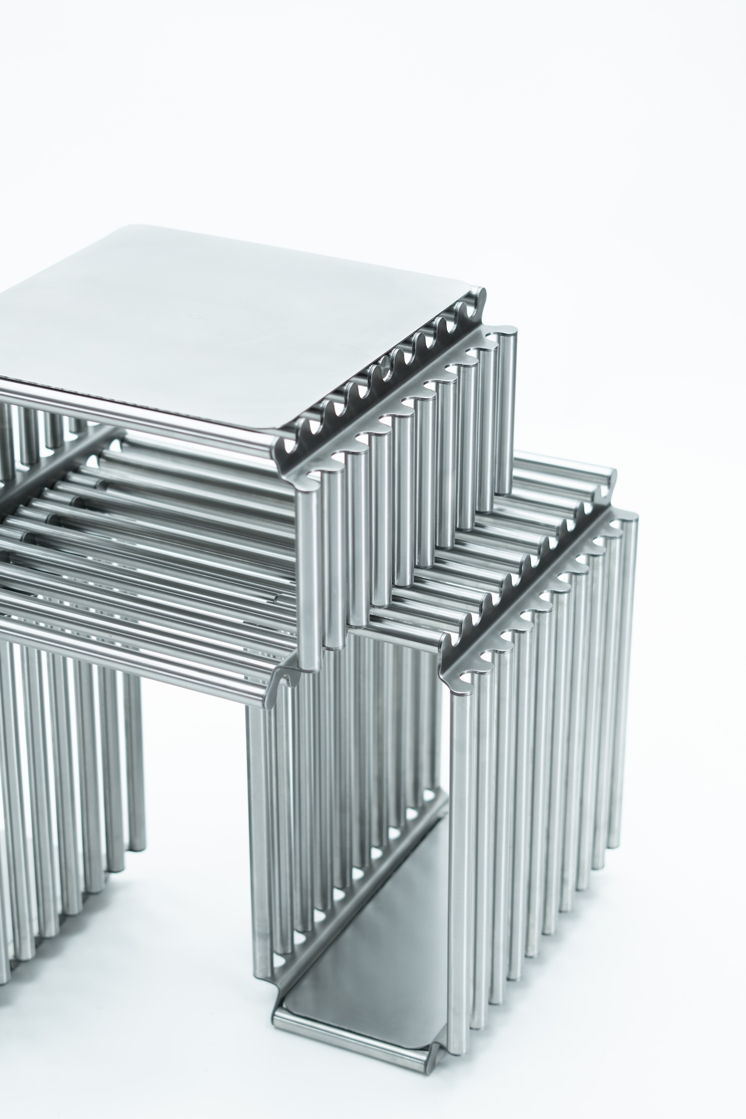 ASET treats fabrication as a primary design tool. Metal sheet bending and MIG/TIG welding are not finishing steps applied to a predetermined form; they are the logic from which the geometry emerges. This places the studio within a lineage of structurally honest design thinking running from Jean Prouvé's exposed metalwork through Konstantin Grcic's industrial rigor, where construction methods become the visual language of the object itself rather than something to be concealed behind it.